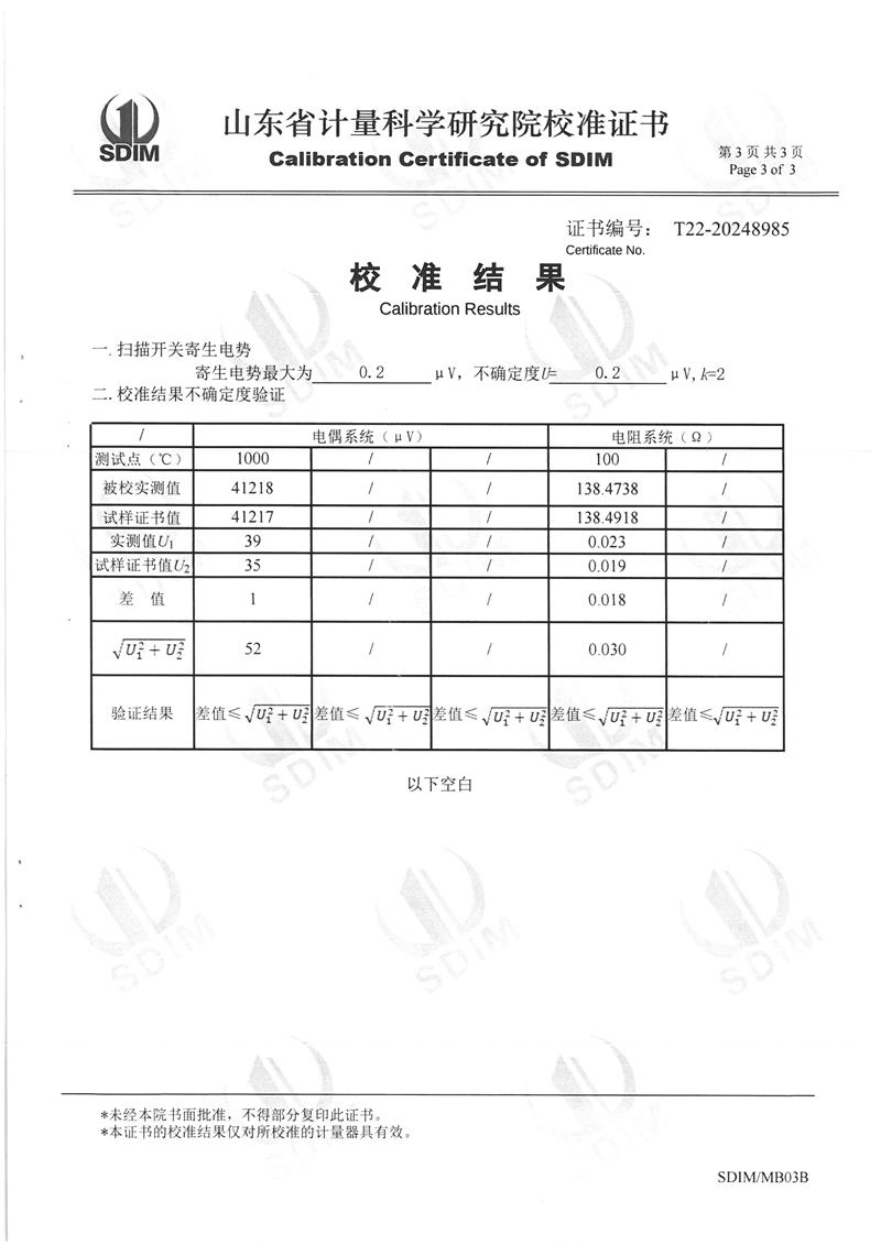 熱電偶、熱電阻自動檢測系統(tǒng)校準證書