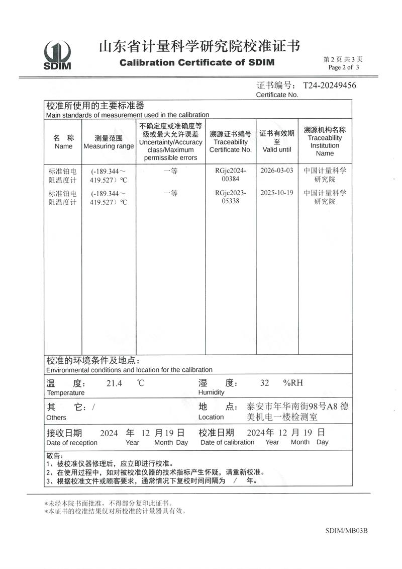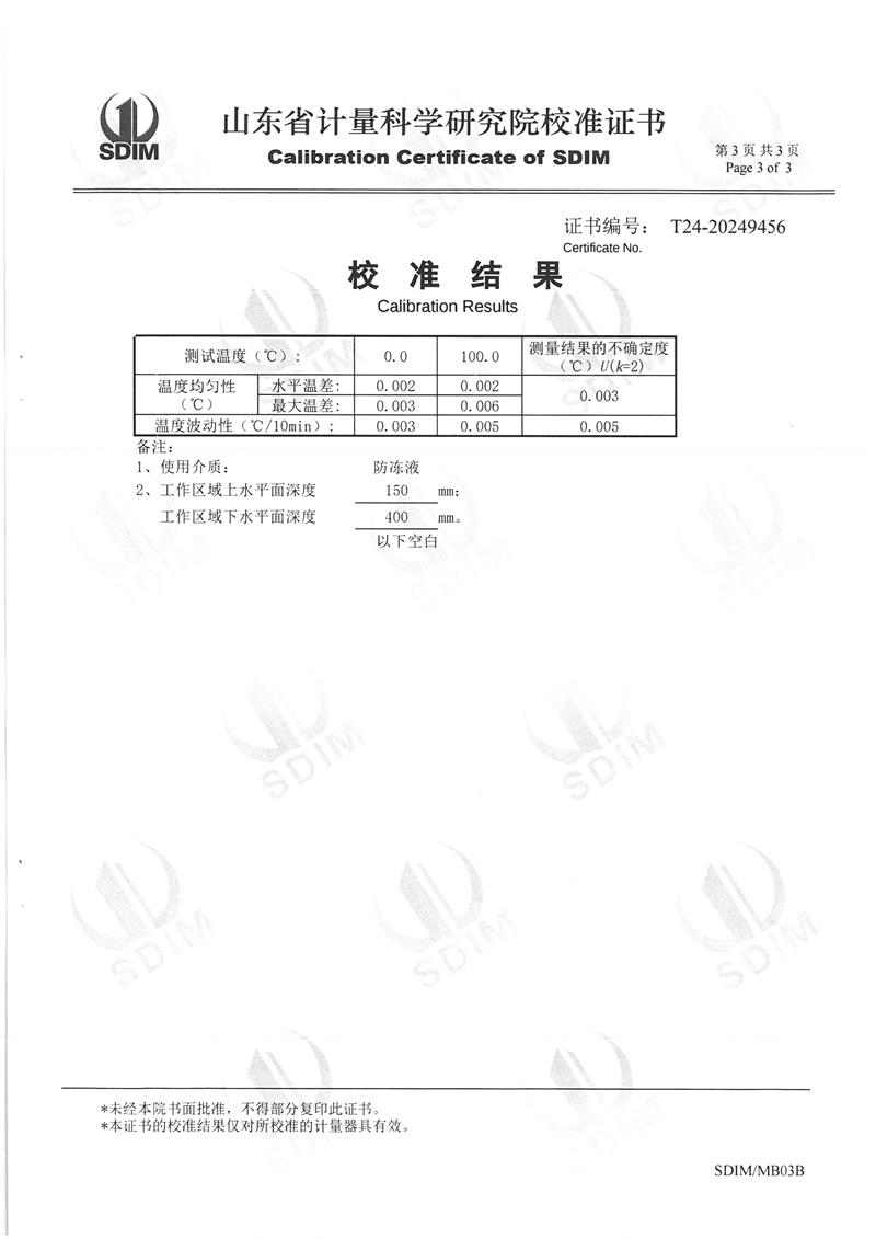 制冷恒溫槽(0~100℃)校準證書 2024-12-26 本文被閱讀 6890 次