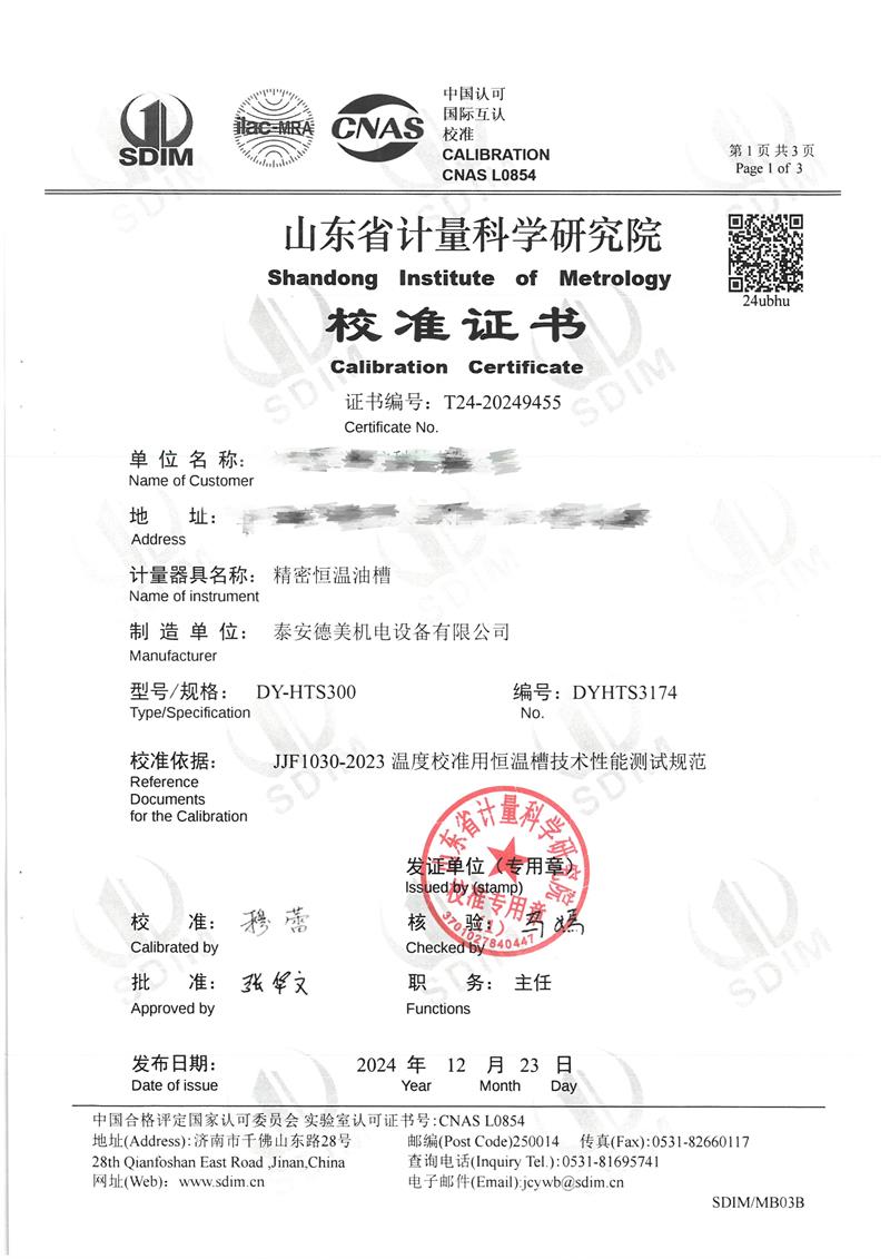 油槽(70~300℃)校準證書 2024-12-26 本文被閱讀 7630 次