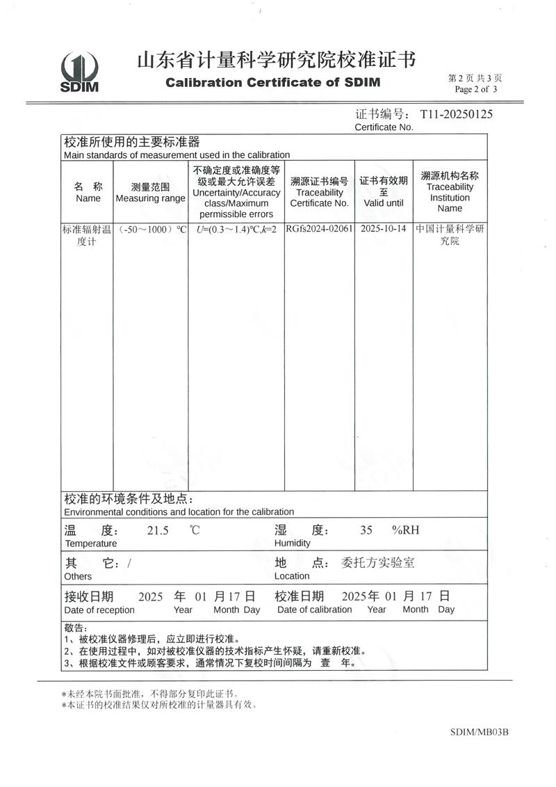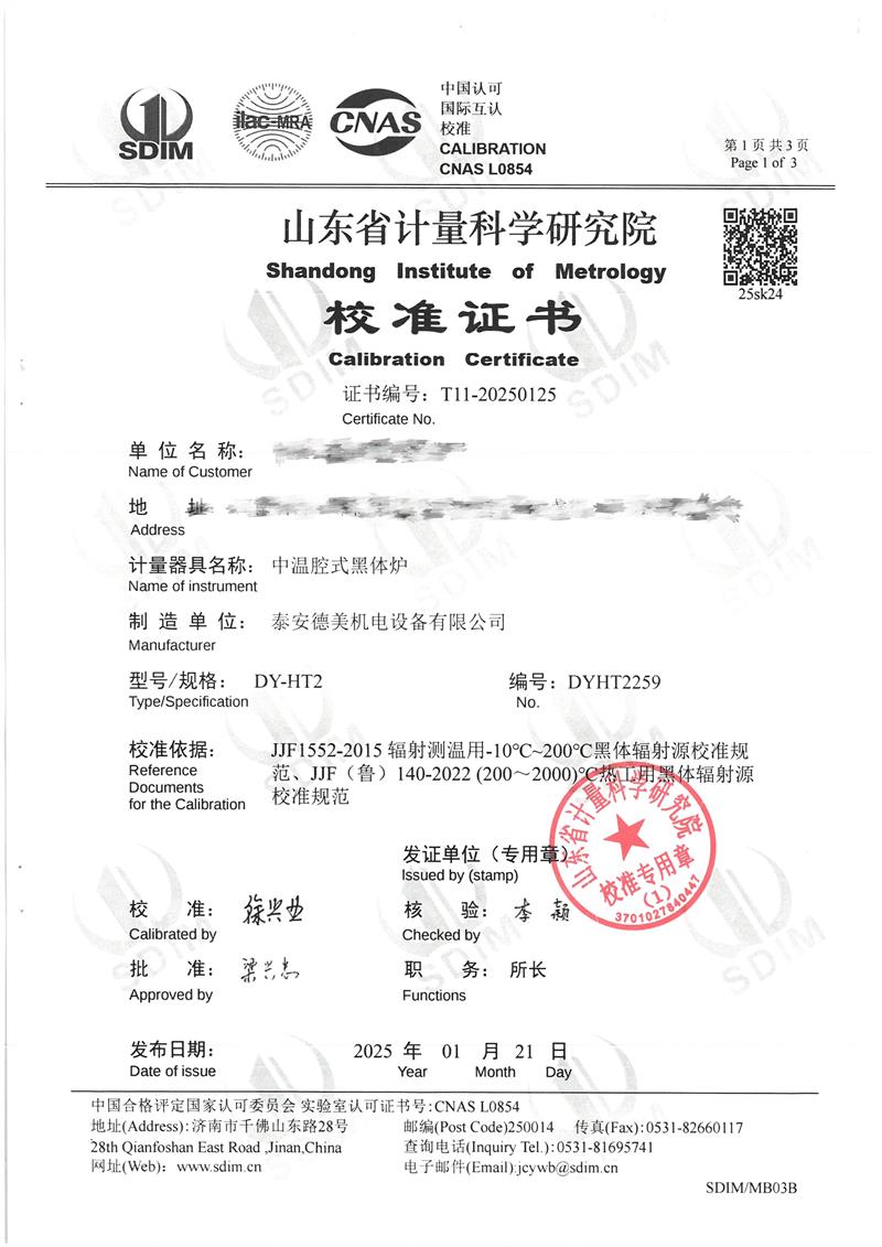 | 上一條:便攜式恒溫油槽(70-300℃)校準(zhǔn)證書 | 下一條:DY-HT2M-C高溫面源黑體爐(100mm) |