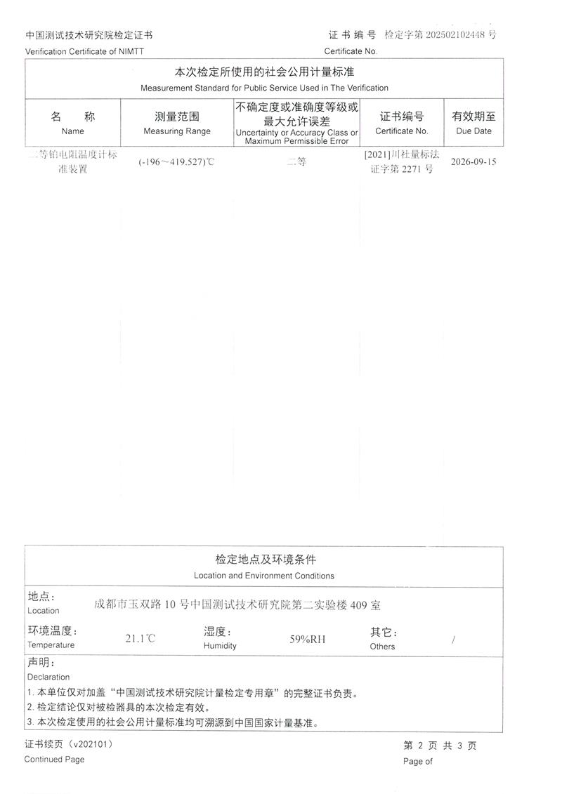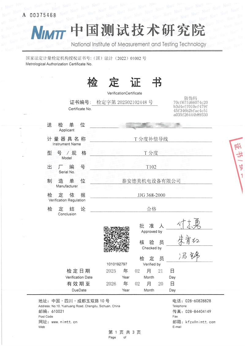 T分度補(bǔ)償導(dǎo)線檢定證書 2025-2-25 本文被閱讀 5390 次