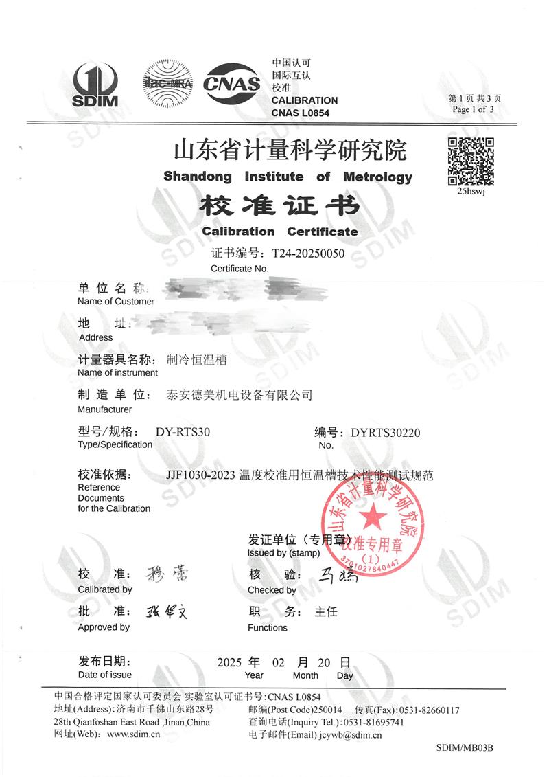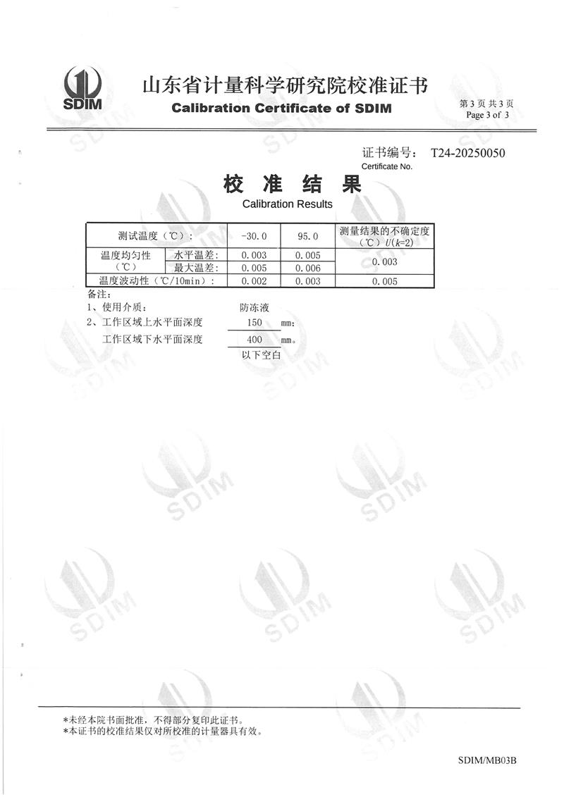 制冷恒溫槽(-30~95℃)校準證書 2025-2-26 本文被閱讀 6317 次