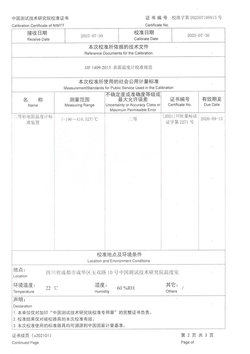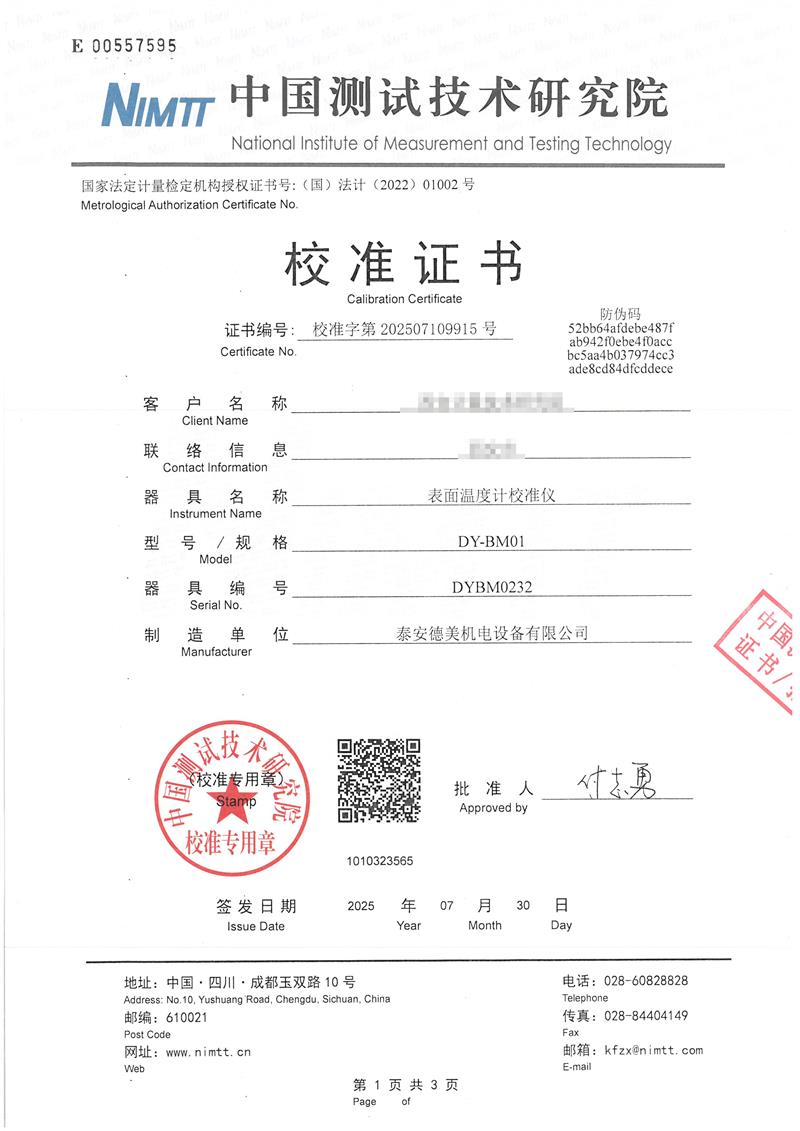 表面溫度計(jì)校準(zhǔn)儀(40-400℃)校準(zhǔn)證書 2025-8-6 本文被閱讀 3159 次