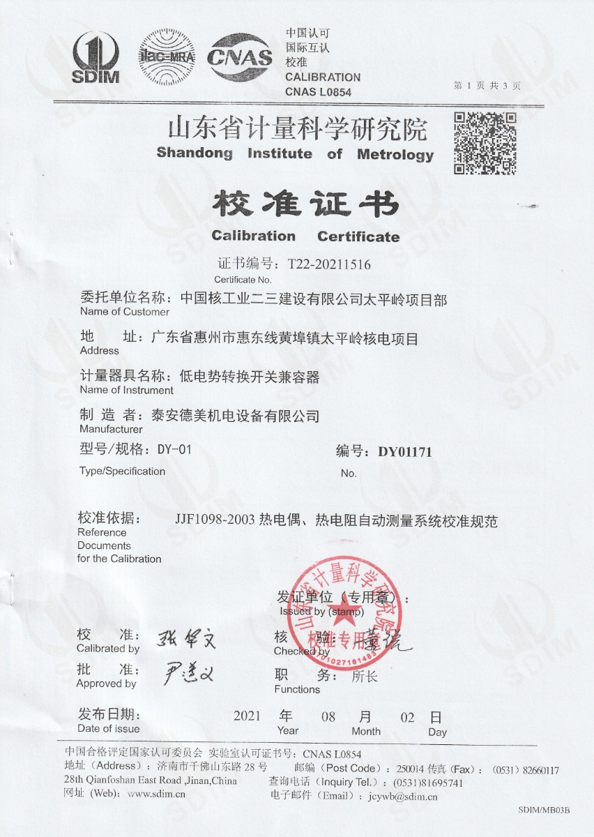 | 上一條:中國核工業(yè)二三建設有限公司太平嶺項目部水平尺專用校準臺 | 下一條:DY-HT2M-C高溫面源黑體爐(100mm) |