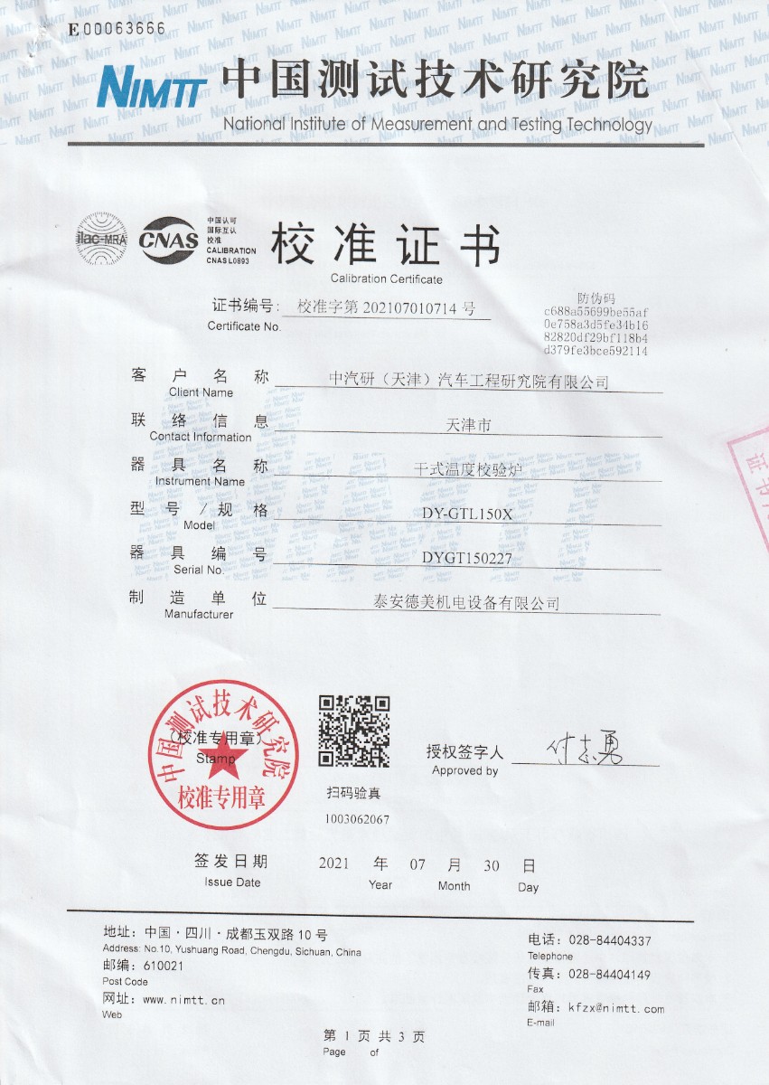 中汽研(天津)汽車工程研究院有限公司-干式溫度校驗爐 2021-8-6 本文被閱讀 21657 次