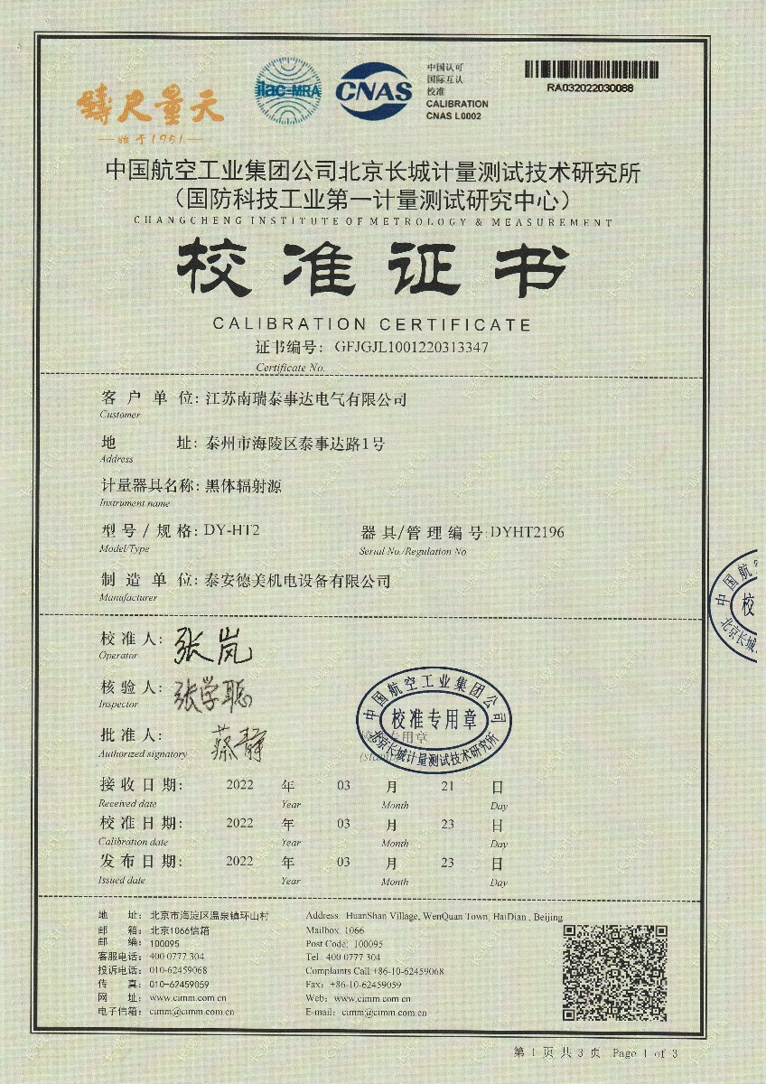 江蘇南瑞泰事達電氣有限公司-黑體輻射源 2022-3-29 本文被閱讀 15906 次