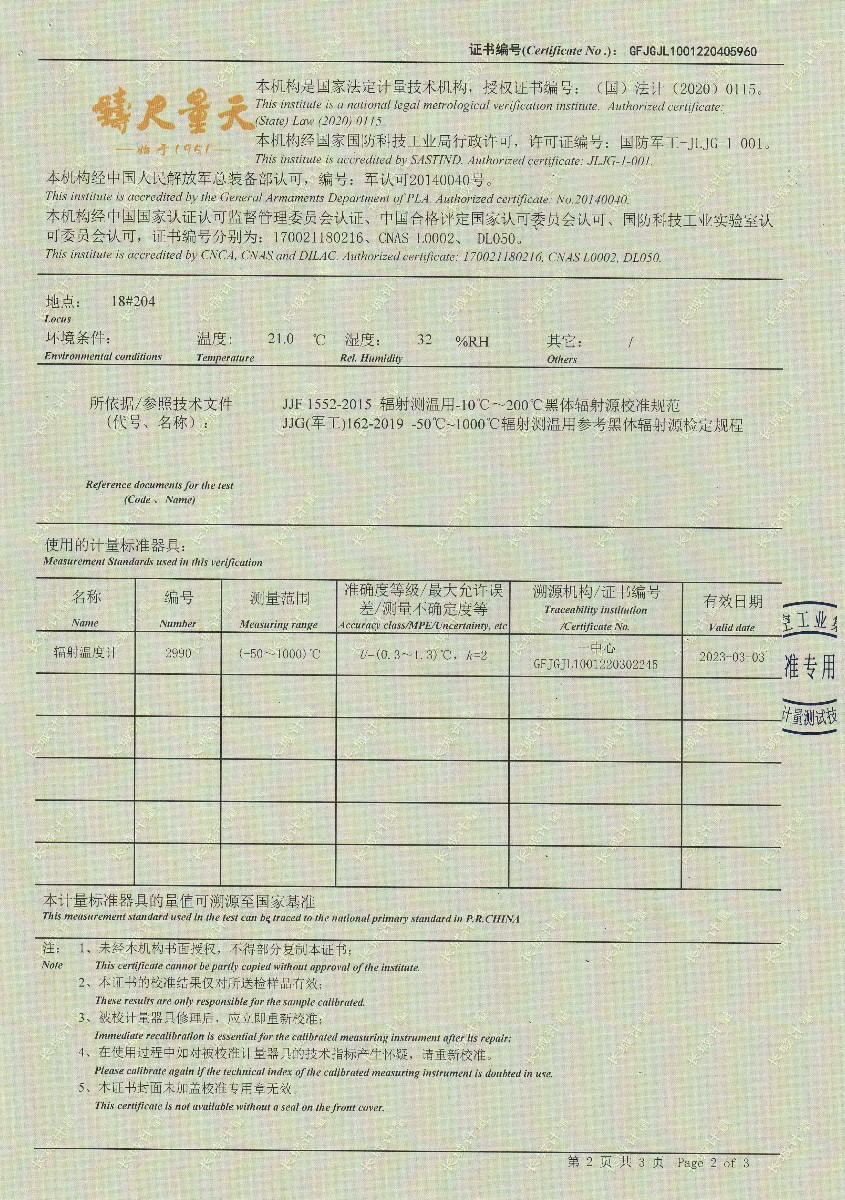 | 上一條:浙江弘志計(jì)量測(cè)試有限公司-黑體輻射源 | 下一條:DY-HT2M-C高溫面源黑體爐(100mm) |