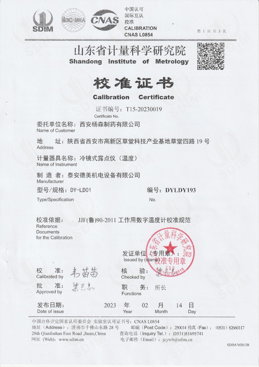 | 上一條:西安楊森制藥有限公司 冷鏡式露點(diǎn)儀 檢定證書(shū) | 下一條:DY-HT2M-C高溫面源黑體爐(100mm) |