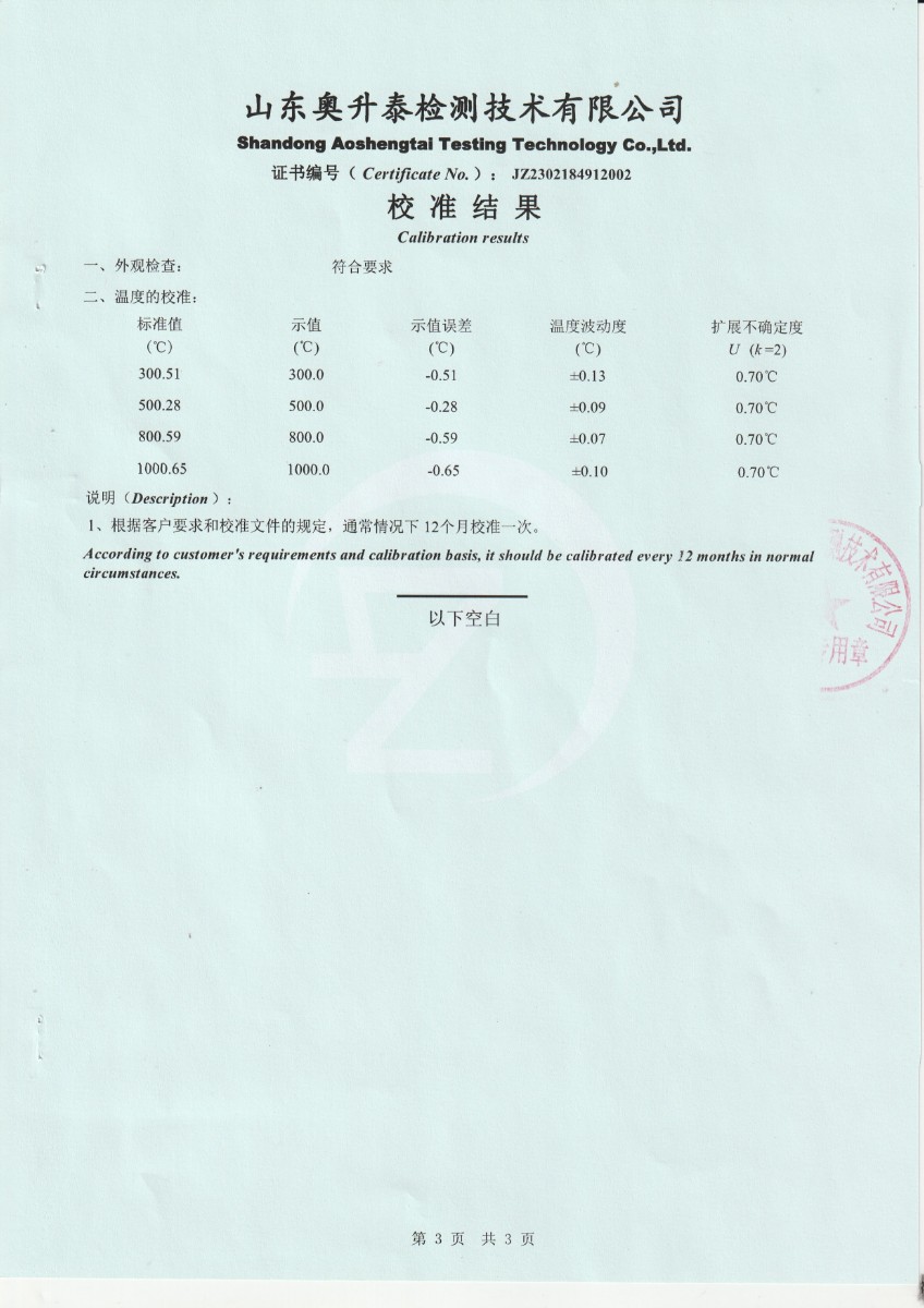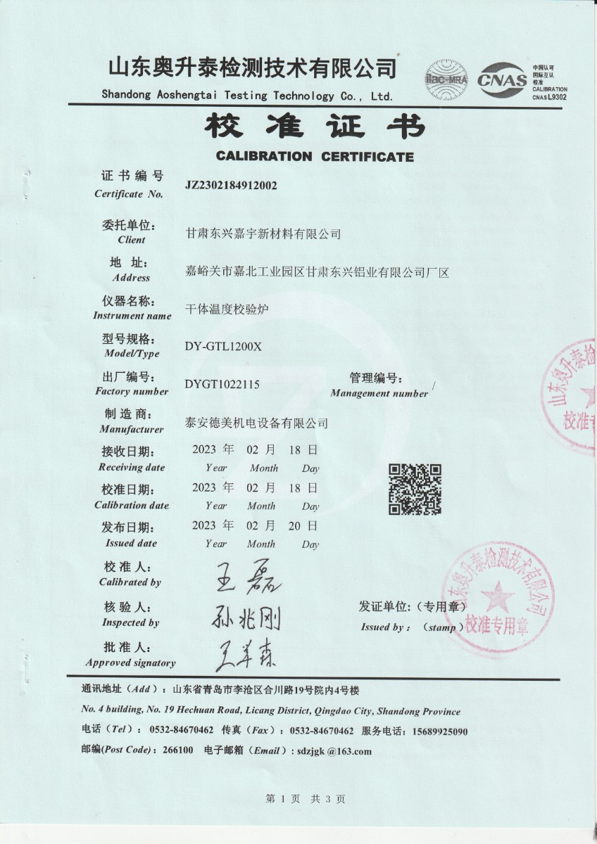 甘肅東興嘉宇新材料有限公司 干體溫度校驗(yàn)爐 校準(zhǔn)證書(2) 2023-2-25 本文被閱讀 14663 次