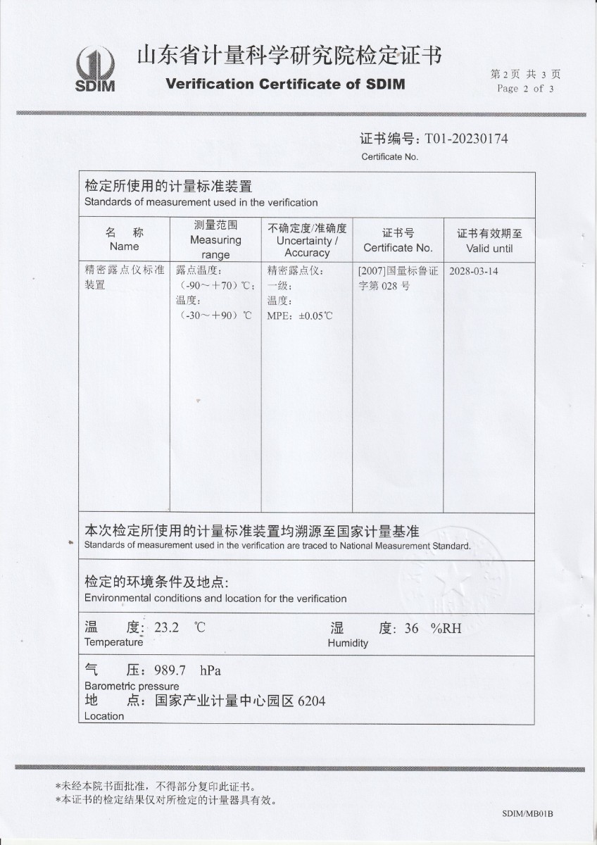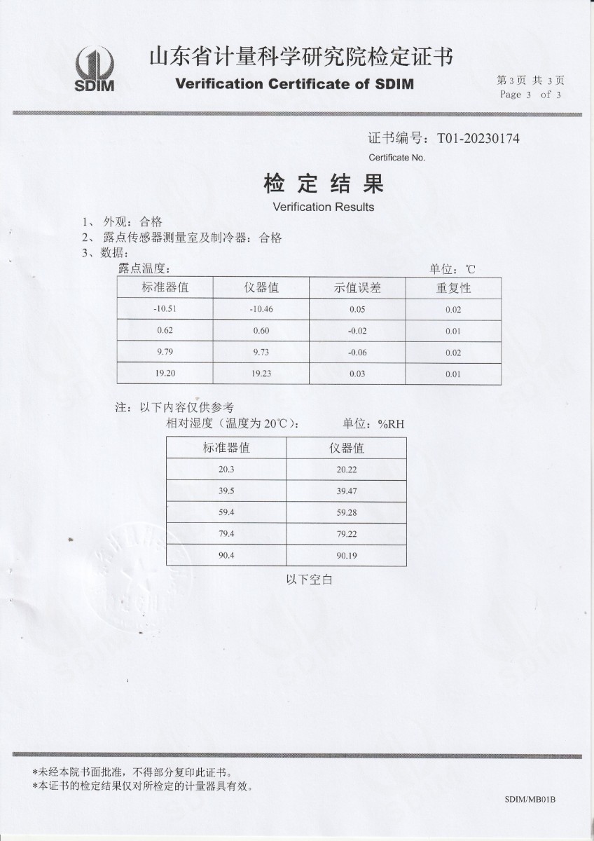 冷鏡式露點儀檢定證書 2023-12-13 本文被閱讀 9788 次