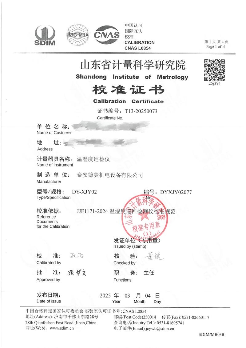 溫濕度巡檢儀校準(zhǔn)證書 2025-3-8 本文被閱讀 4178 次