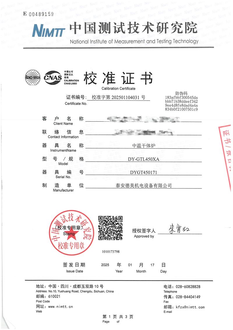 | 上一條:高溫干體爐(300-1200℃)校準(zhǔn)證書 | 下一條:DY-HT2M-C高溫面源黑體爐(100mm) |