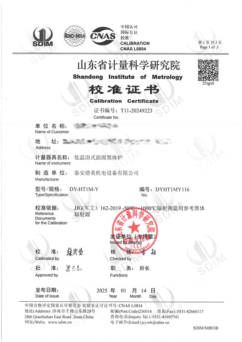 上一條:中溫干體爐(室溫+5~400℃)校準(zhǔn)證書下一條:DY-HT2M-C高溫面源黑體爐(100mm)
