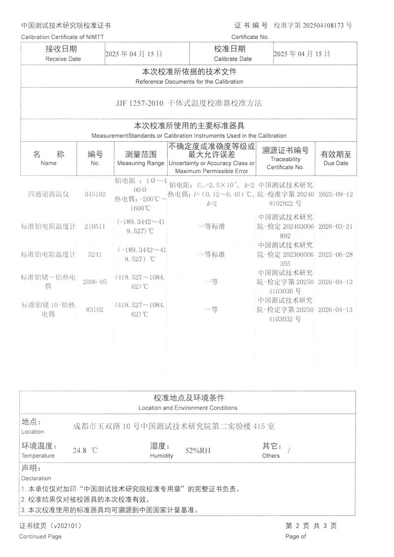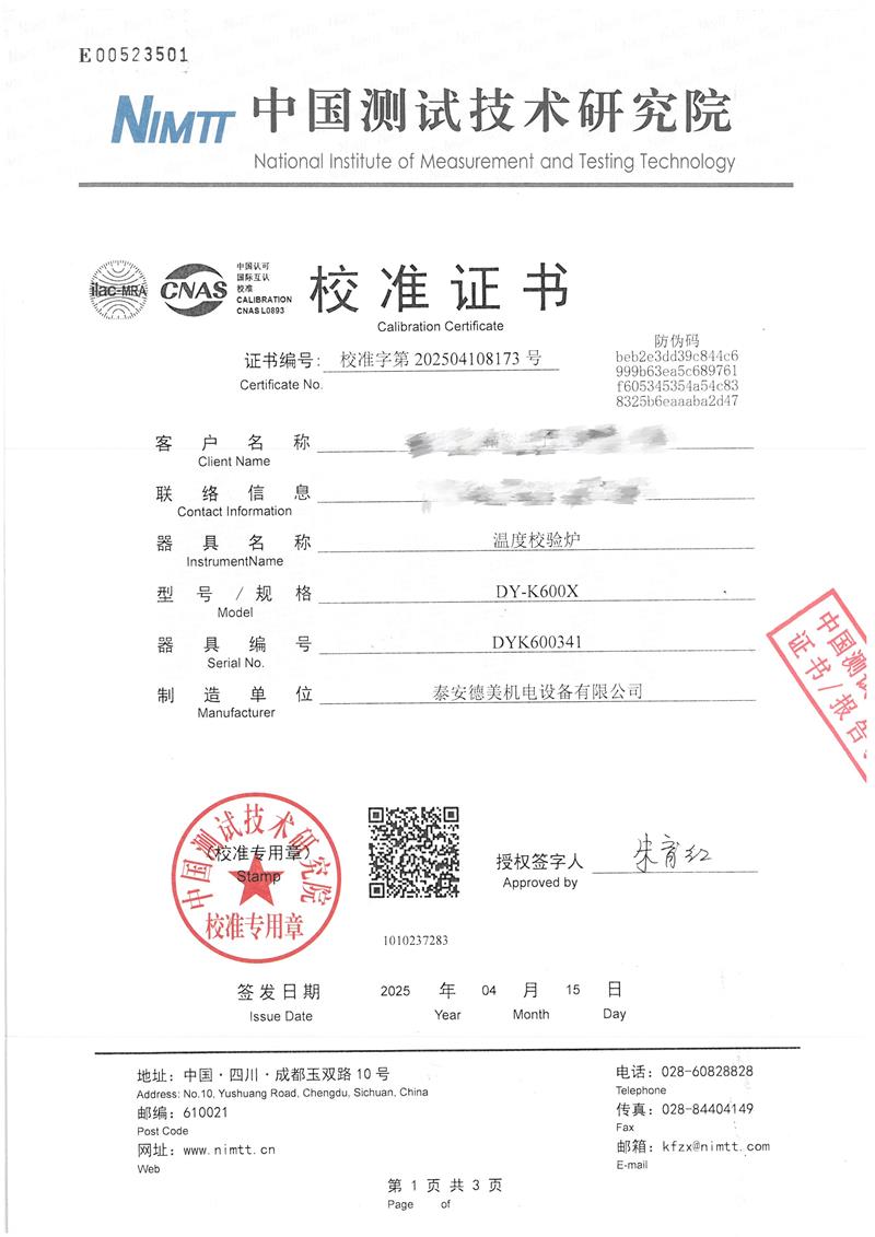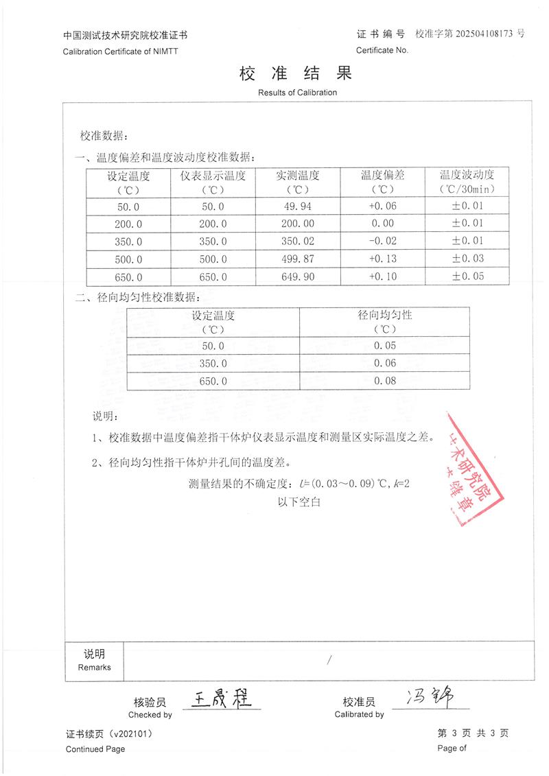 溫度校驗爐(50~650℃)校準證書 2025-4-30 本文被閱讀 3991 次