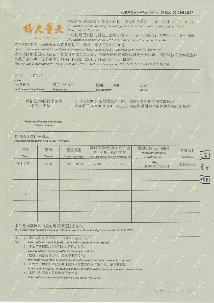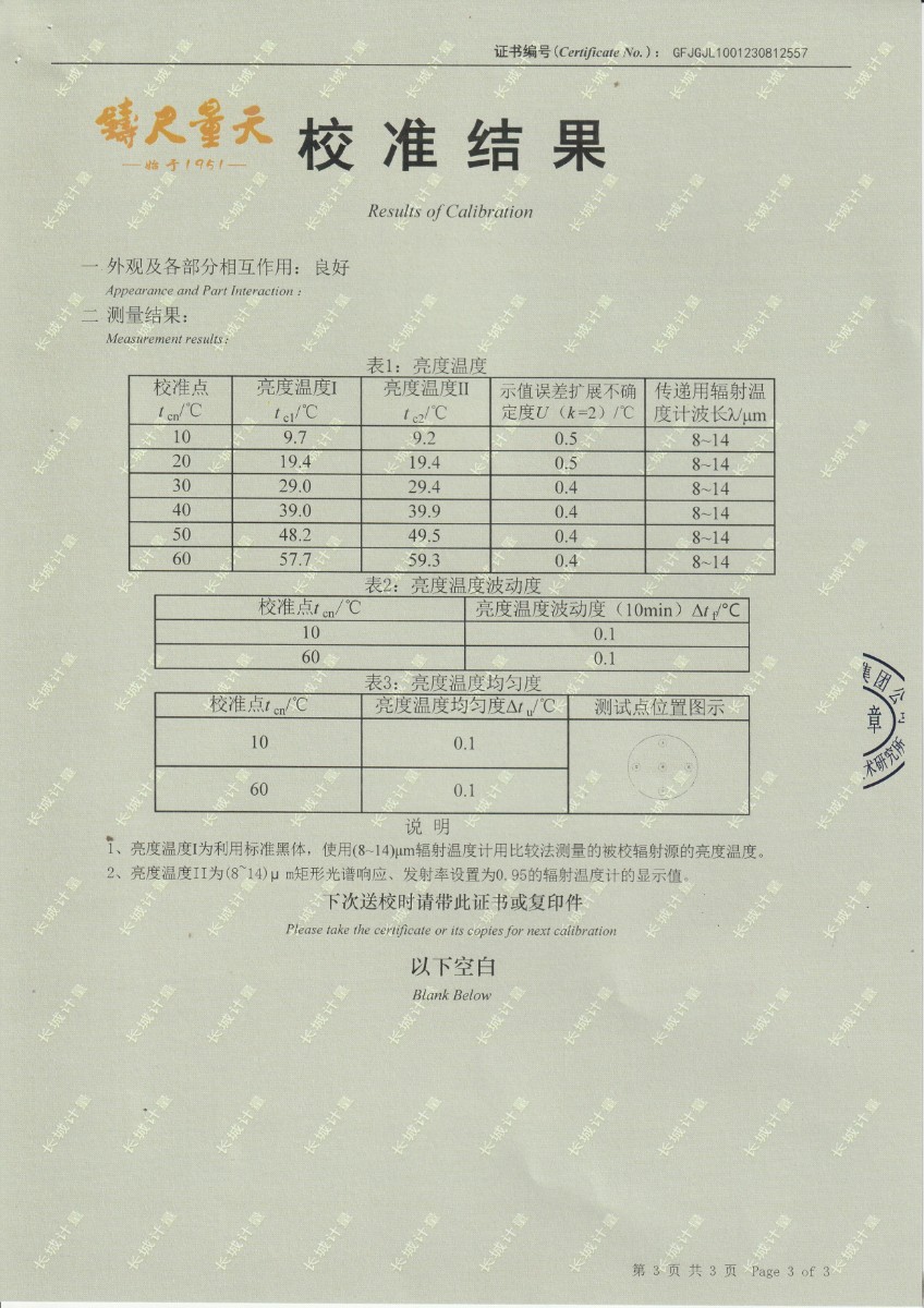面源黑體爐DYHT1M141校準證書 2023-9-20 本文被閱讀 9821 次