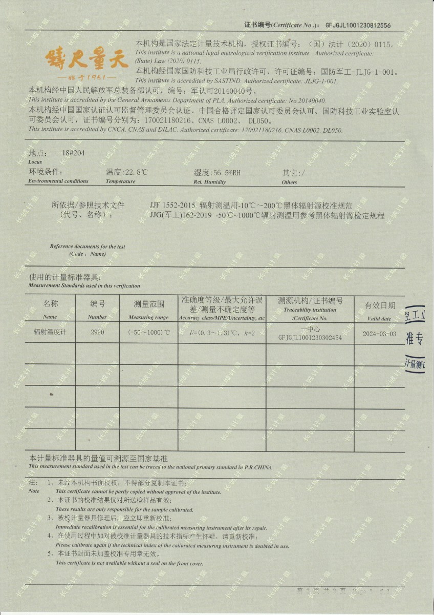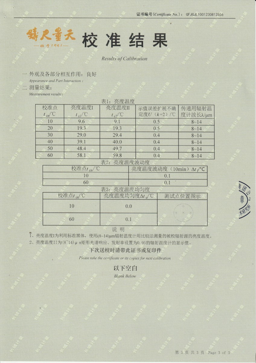 面源黑體爐DYHT1M140校準(zhǔn)證書 2023-9-20 本文被閱讀 11402 次