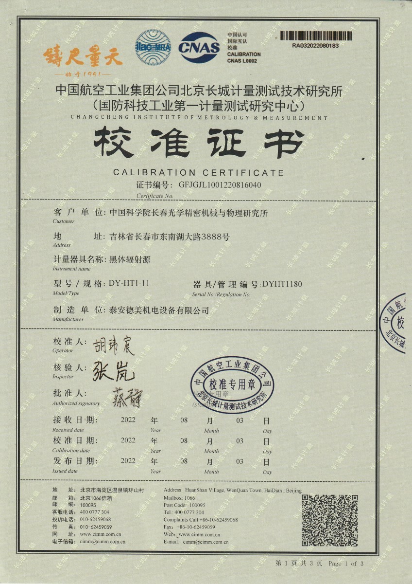 | 上一條:中國科學(xué)院長春光學(xué)精密機(jī)械與物理研究所-黑體爐DY-HT1-2 | 下一條:DY-HT2M-C高溫面源黑體爐(100mm) |