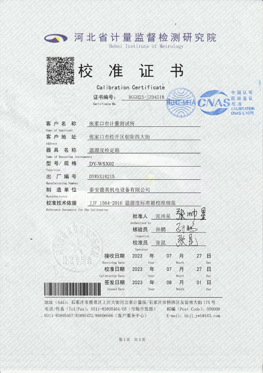 張家口市計(jì)量測(cè)試所-溫濕度檢定箱 2023-8-12 本文被閱讀 16395 次