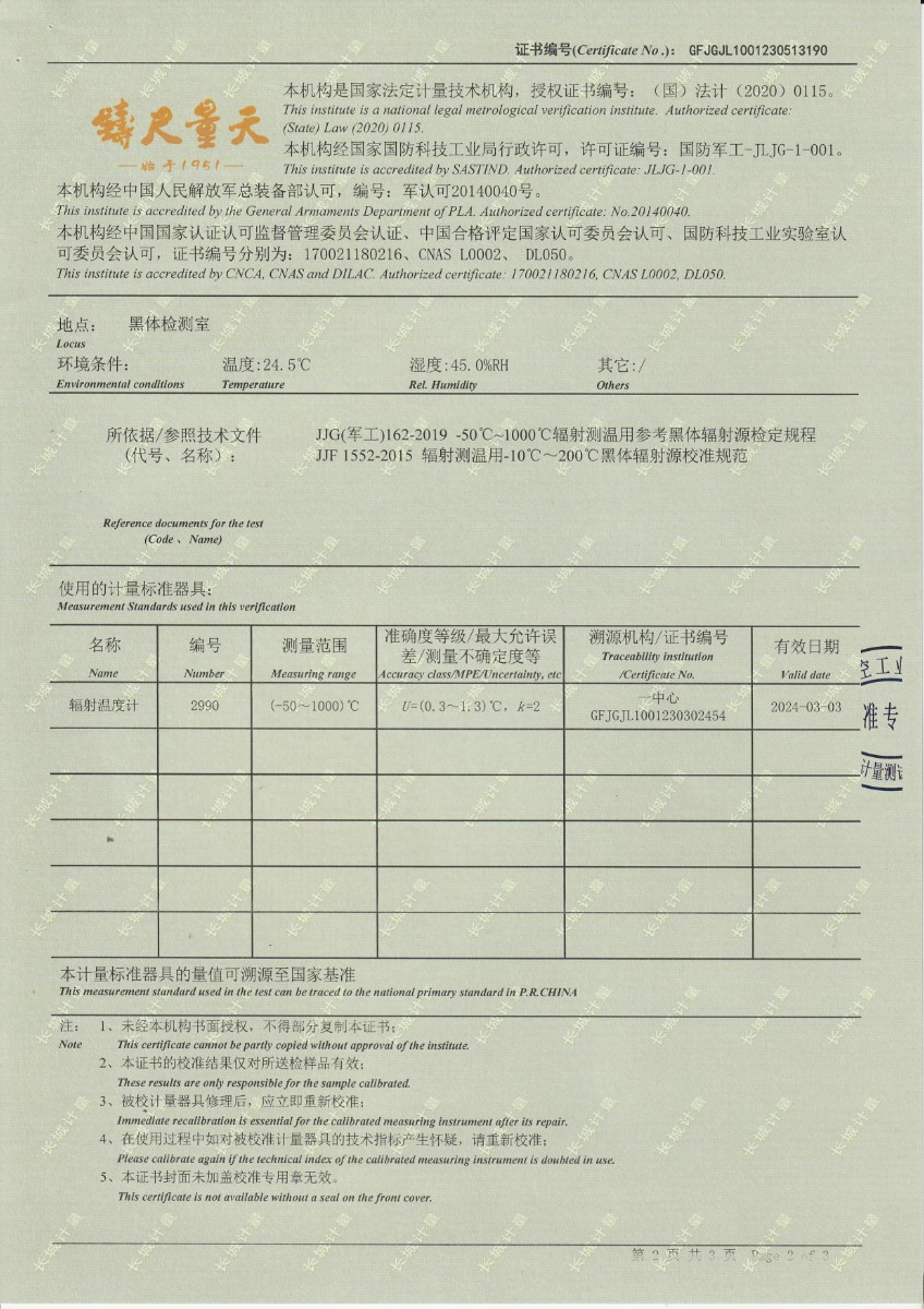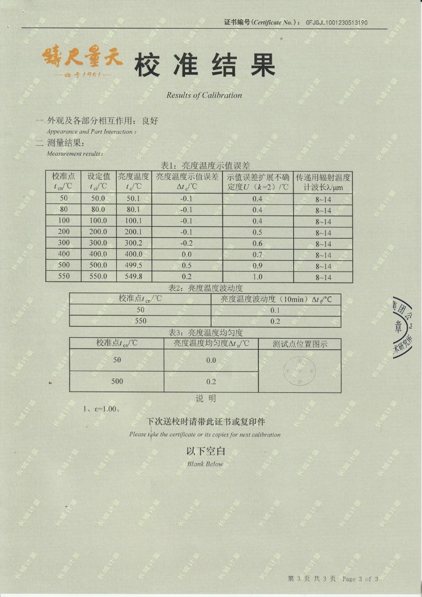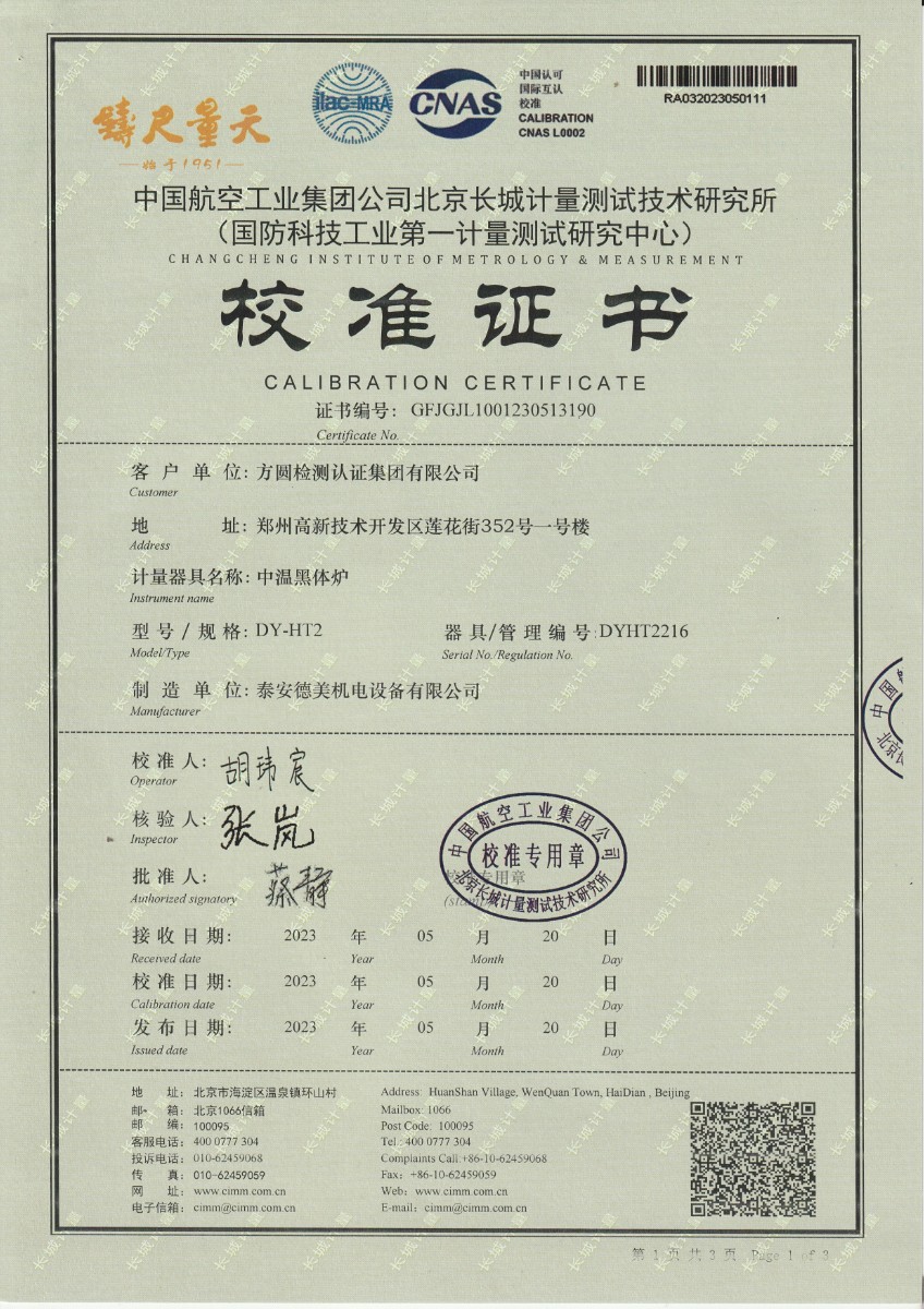 | 上一條:山東凱利布森測(cè)控技術(shù)有限公司 耳溫空腔(黑體輻射源) 校準(zhǔn)證書 | 下一條:DY-HT2M-C高溫面源黑體爐(100mm) |